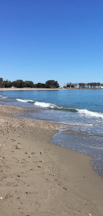 También llamada de Palomares. Es amplia, abierta y de arena fina. Su principal característica es el frondoso bosque de pinos y eucaliptos que la respalda. Es una playa de muy fácil acceso (ALP-118) y aparcamiento. Cuenta con abundantes servicios, entre ellos, un chiringuito donde degustar la gastronomía cuevana. Es muy frecuentada por pescadores.