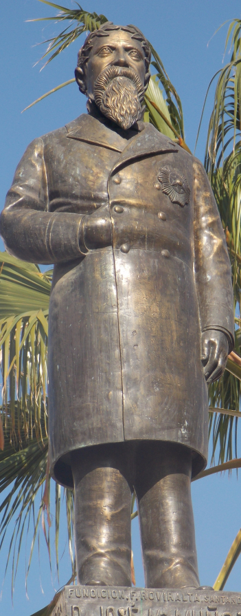 El pie está realizado en mármol blanco de Macael y la estatua en bronce. Representa el agradecimiento de todo el pueblo a José Mª Muñoz y Bajo de Mengíbar, conocido popularmente como el Santo Negro, ya que fue benefactor de este municipio cuando fue anegado por las inundaciones de 1879 y 1888.