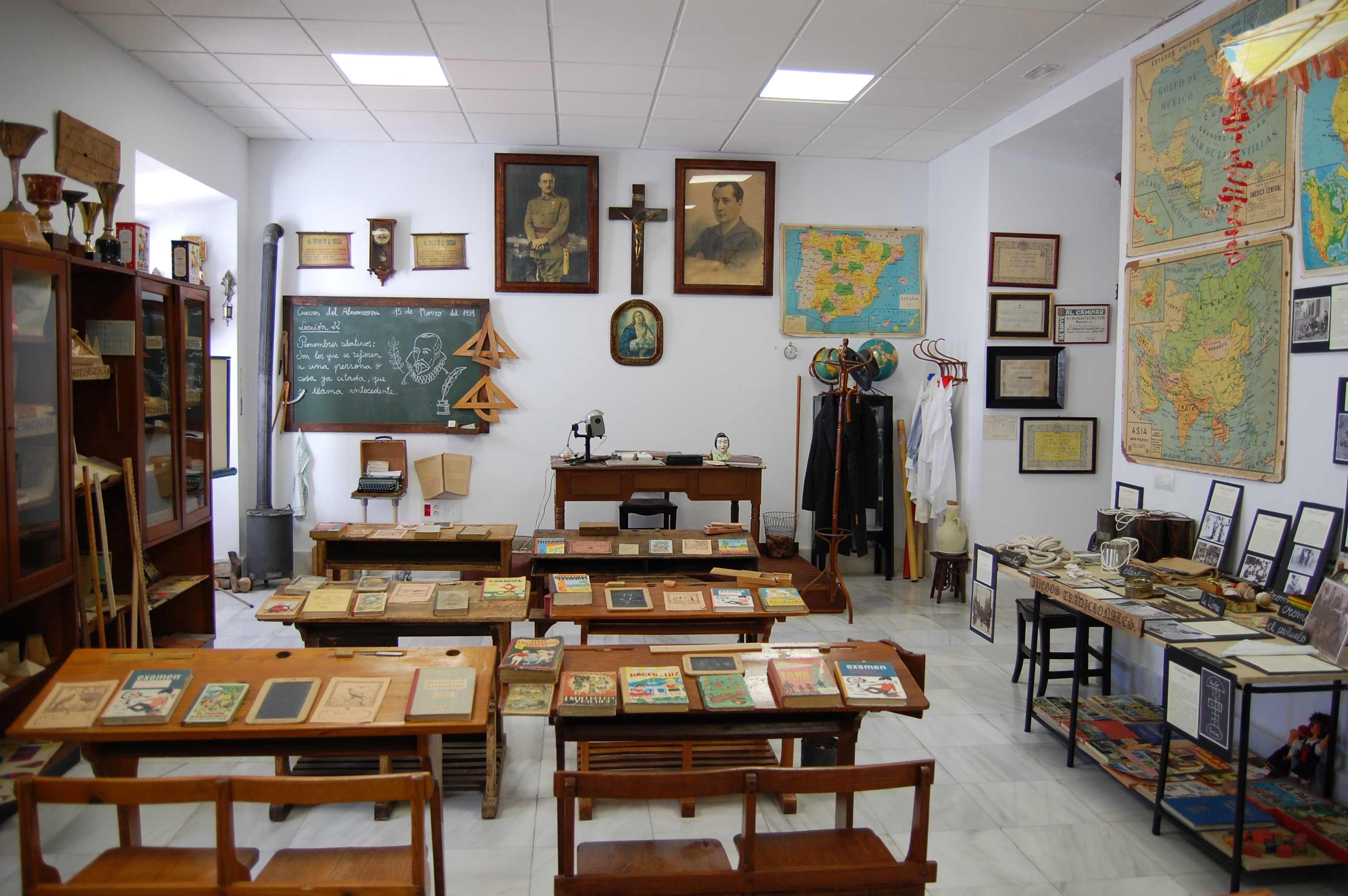 Una rica reunión de mobiliario y objetos escolares recrean, de manera muy completa, aquel universo de pupitres de madera encerados de pizarra, tizas, lapiceros, plumas y tinteros, enciclopedias y cuadernos de caligrafía, pero también de aquellos juegos que niñas y niños practicaban en los recreos, imágenes de antaño que nos sumen en amables recuerdos.